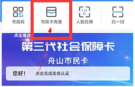 1、进入舟山智慧民生APP的主页,点击“市民卡充值”。