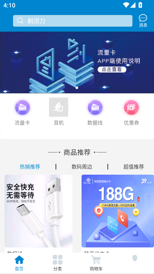 1.我的页面顶部显示请登录下方罗列流量卡、优惠券等功能入口,我的订单模块含待付等状态,底部导航切换便捷,引导用户登录管理个人信息。