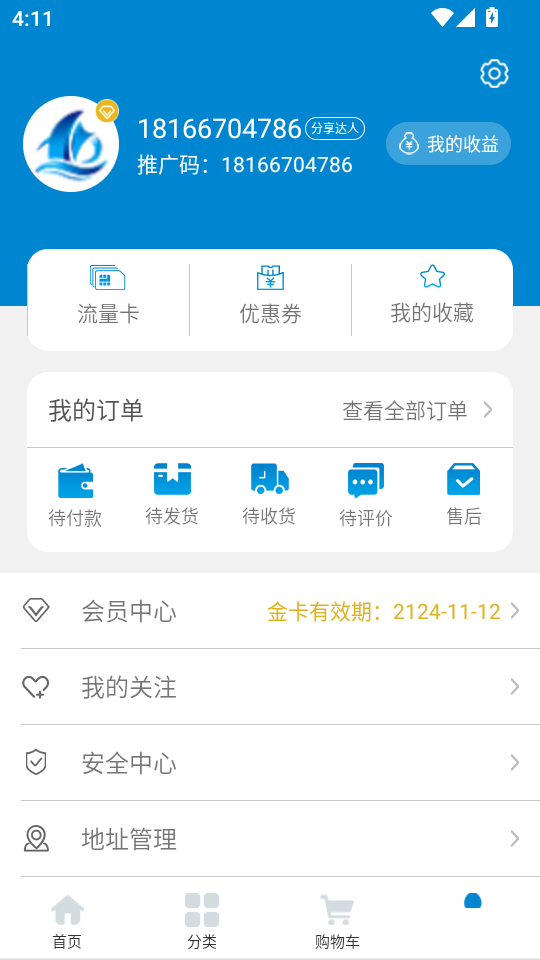 4.之后进入个人中心界面,点击底部“地址管理”功能按键进入下一步。