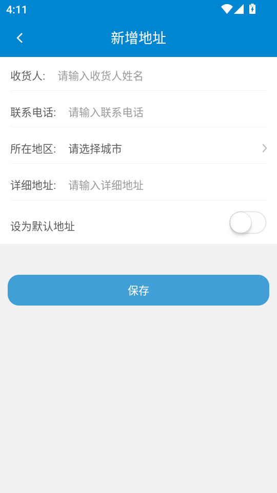 6.最后大家在“新增地址”界面,输入收货人、联系电话、所在地区、详情地址后,点击“保存”按钮就完成了。