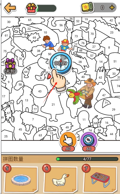 5.适当使用道具。指南针道具的性价比远高于提示手指;只要手速够快,指南针能在10秒内帮你解决多个贴纸。