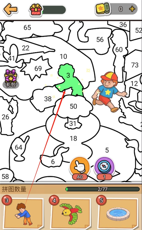 3.点击贴纸,游玩关卡模式时,点击碎片框内的贴纸,贴纸将会以真实大小呈现,可以根据大小比例去图中寻找它的大致区域。