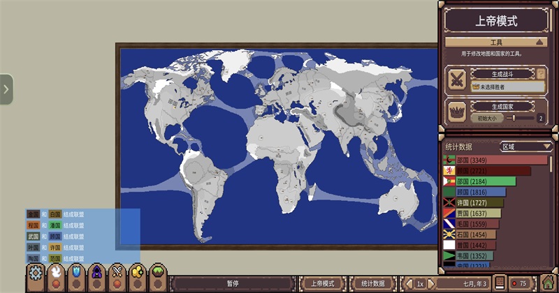 6.然后我们就可以开始我们时代模拟了,玩法和文明系列那类游戏差不多,我们可以在这里再创一个属于自己的世界线发展。