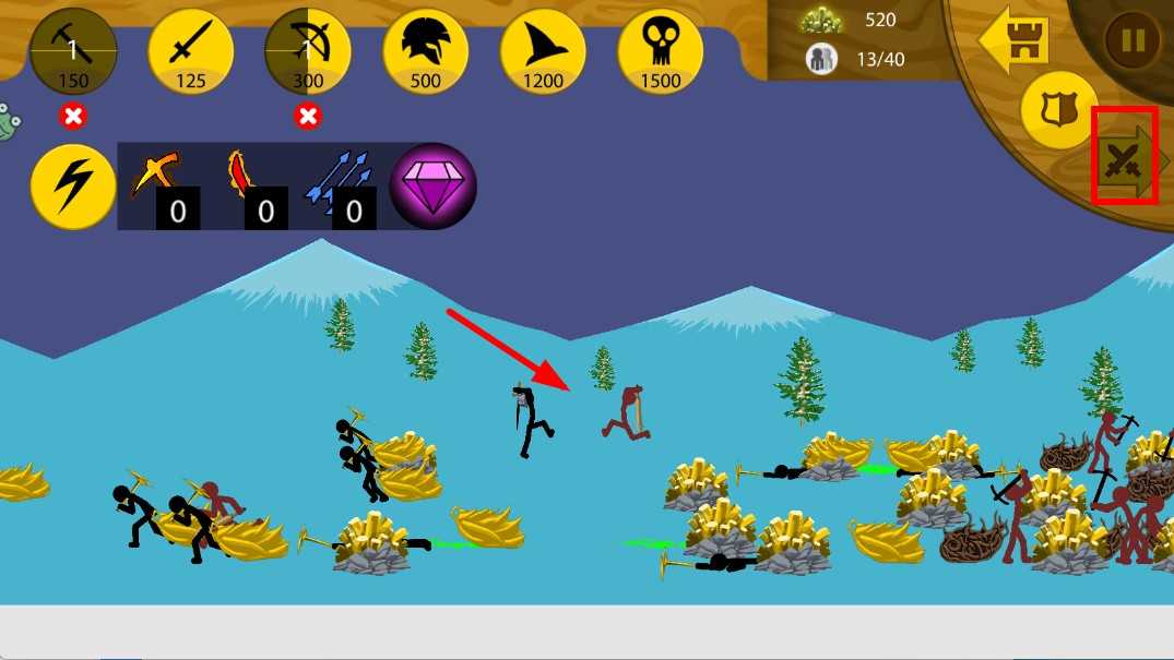 3.战斗中,点击右侧相关按钮,能指挥火柴人战士行动,让他们在战场上移动、攻击,与敌方火柴人展开激烈对抗。