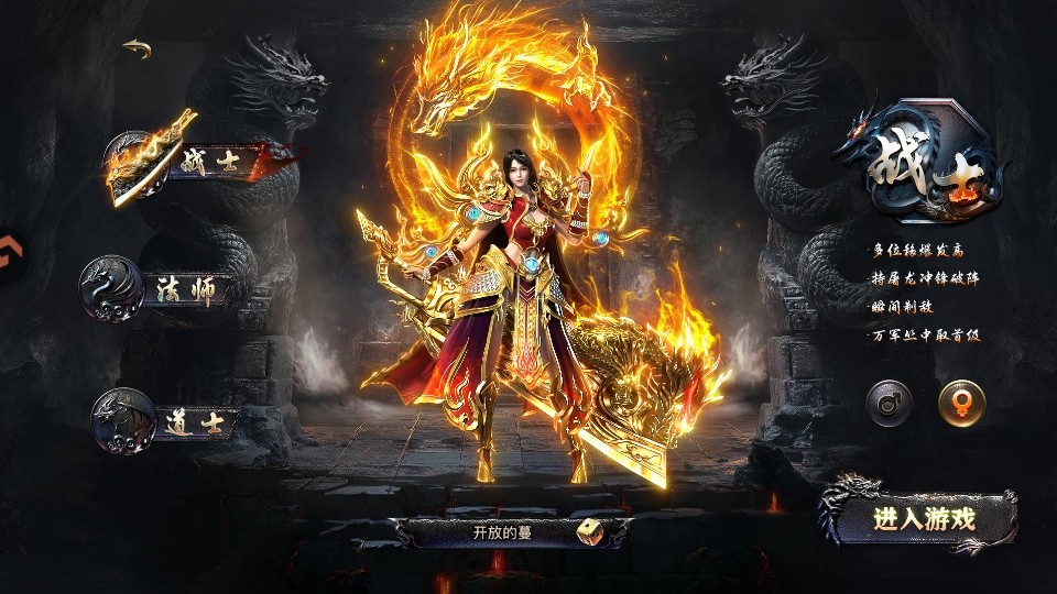 1、战士:近战王者,高生命值和强大物理攻击力,擅长近身搏斗,爆发输出极高。适合喜欢刀刀到肉战斗快感的玩家,后期PK和挑战BOSS时表现强势。