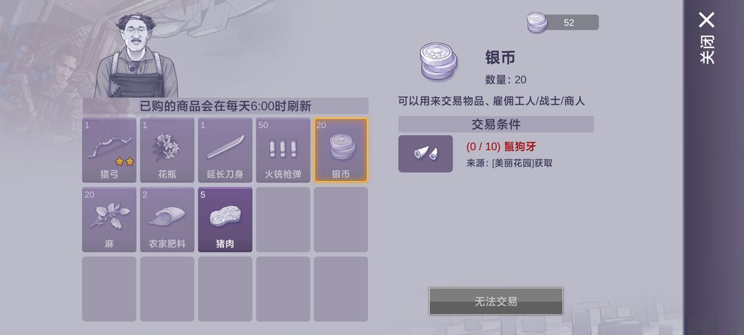 狗狗强子可以自动帮你捡猎物尸体还有猪粪便(用来制作肥料)最强雇佣兵虎哥能在你攻击到猎物的时候自动索敌进攻,但不会主动进攻。
