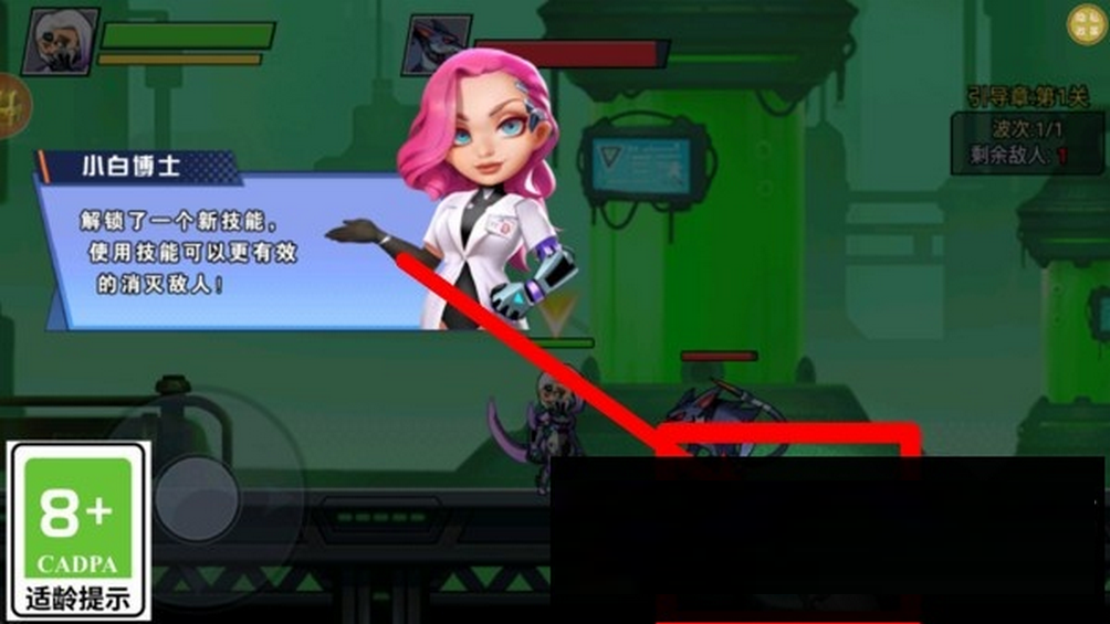 3.解锁新技能时弹出教学指引,点击右下方技能图标即可施放,造成大量范围或单体伤害。