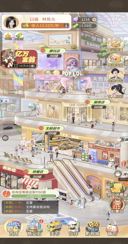 1、随着等级与资金积累,逐步解锁商业街中的生鲜超市、幸福便利店、服装店等新店铺,避免单一店铺经营,分散风险的同时拓展营收渠道。