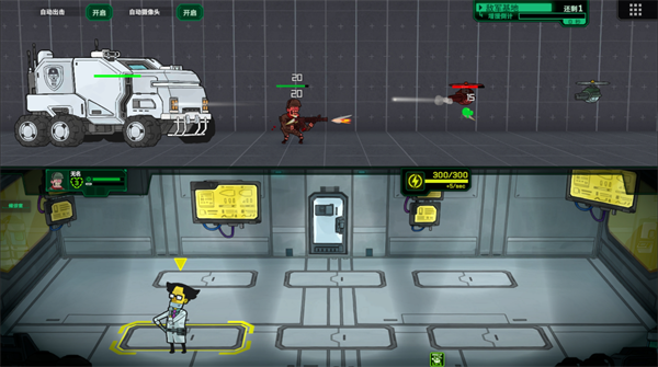 2、前线指挥:士兵会自动作战,玩家需关注血量与压力值。当士兵压力过高时,及时将其撤回医疗车,同时用火炮支援清理密集敌人,减轻前线压力。