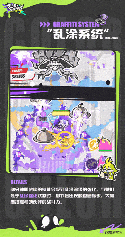 部分神明伙伴的技能会受到乱涂等级的强化,当她们处于乱涂强化状态时,脚下会出现颜色圈标识,大幅度提高神明伙伴的战斗力。