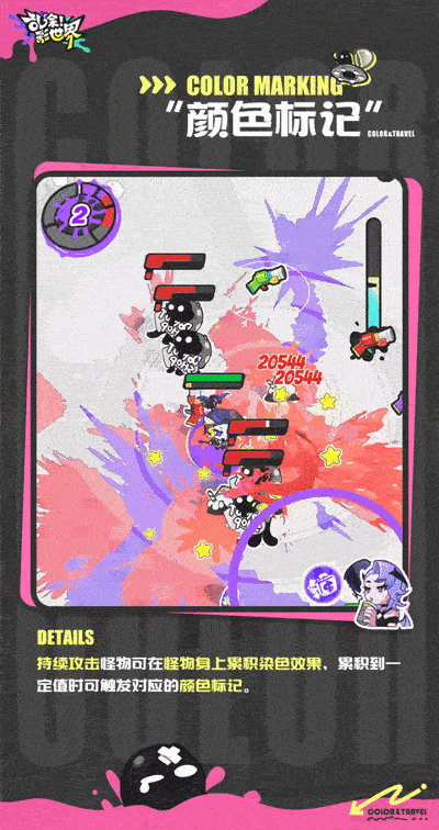 颜色标记可造成大量伤害和持续效果,不同的颜色可以触发不同的颜色标记,怪物身上只能存在一种颜色标记。