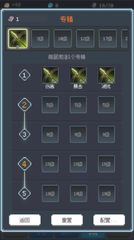 5.消灭怪物积累一定经验后就可以升级,升级可以获得技能点数,点击学院按钮然后点击技能强化就可以强化不同的技能了。