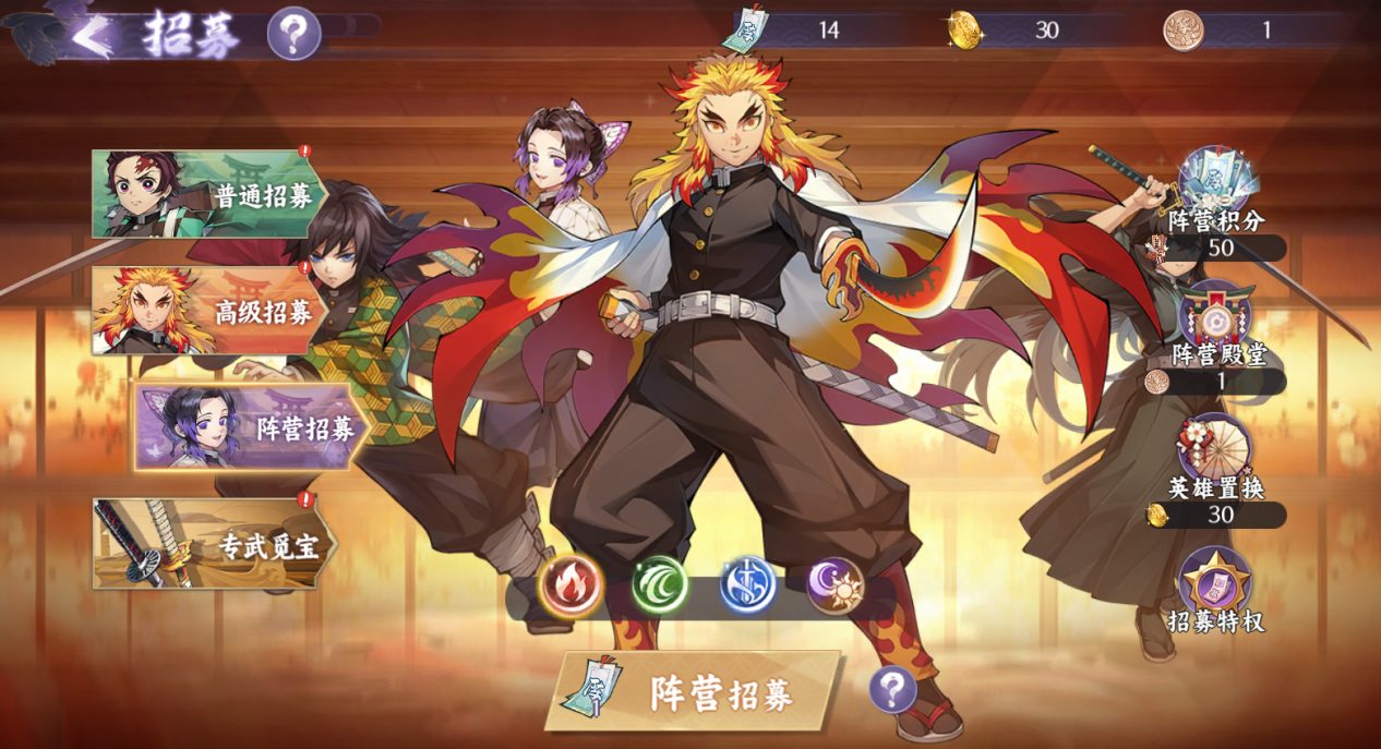 积分招募:高级招募累计1000积分可进行一次积分招募,有机会获得稀有角色。