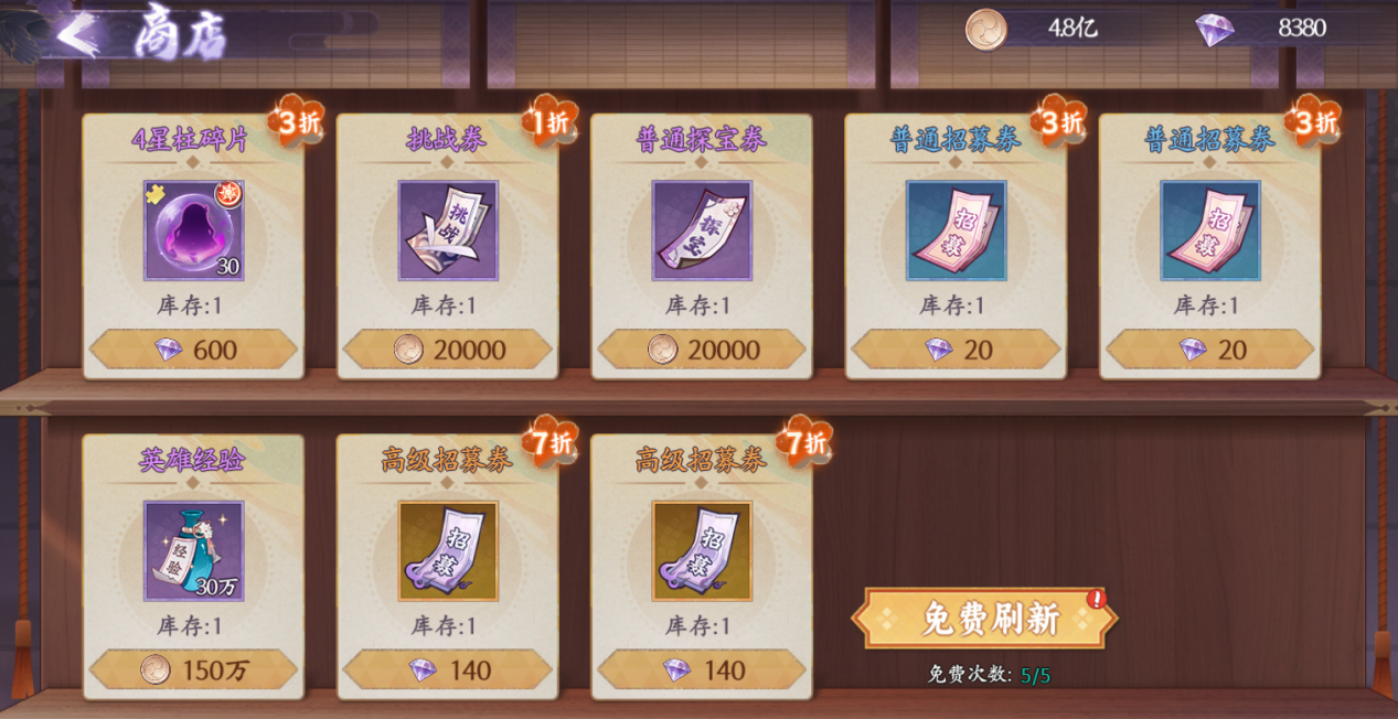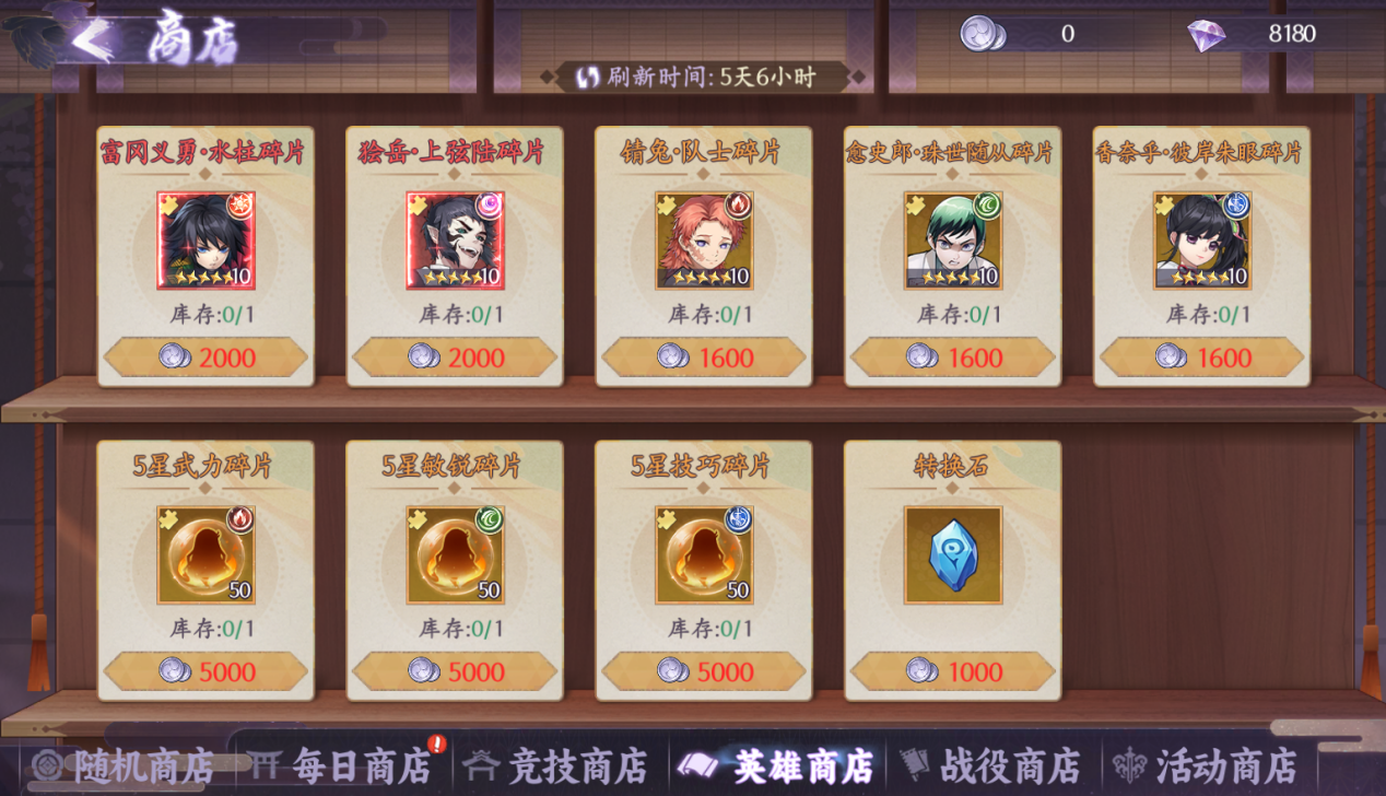 阵营积分商店:VIP5玩家可激活阵营积分兑换功能,指定阵营兑换5星英雄。