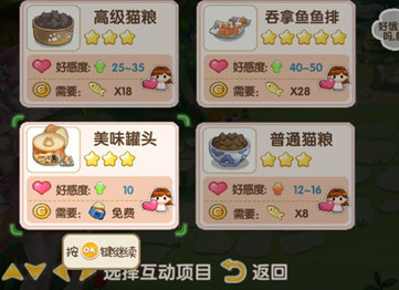 3、选择食物对它进行投喂;