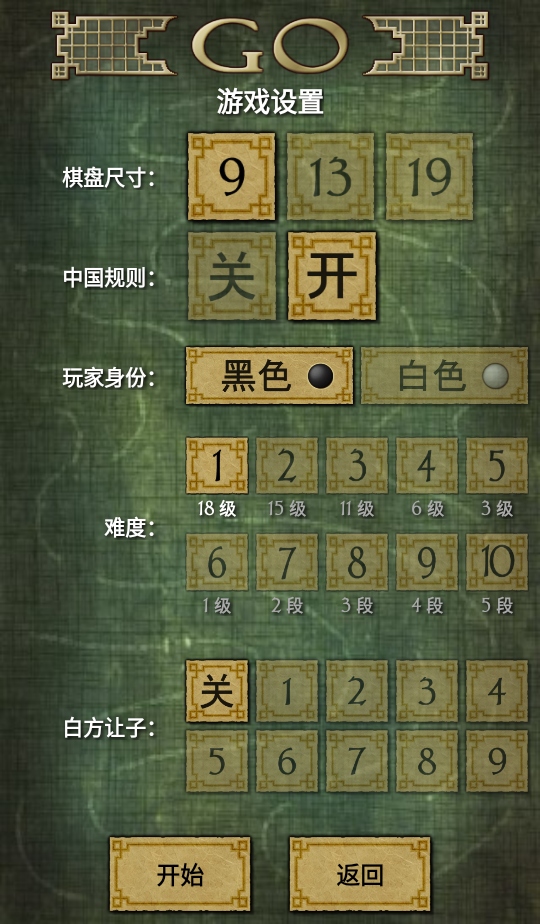 3. 有完整的9x9、13x13游戏,19x19限制为180步,付费版允许整个游戏,还有多个难度级别和多种玩法。