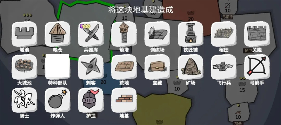 5、铁匠铺:加防御,好像只有防御地块时生效,能减少一些士兵消耗。