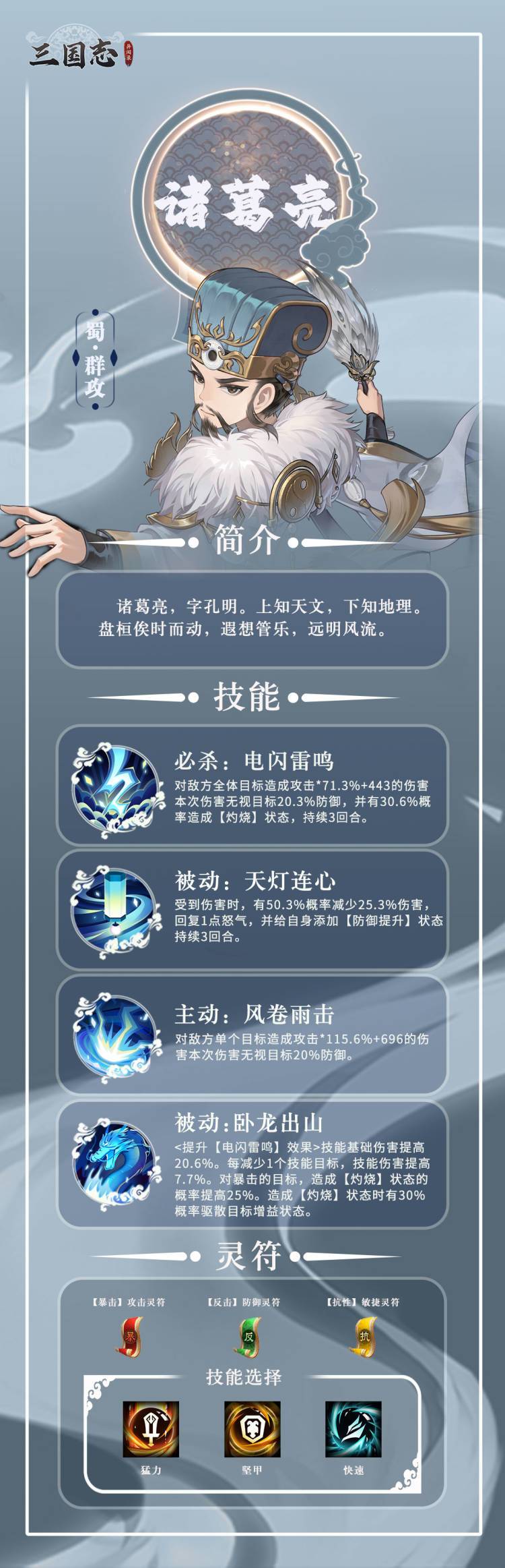 诸葛亮是一个高伤害群体攻击武将,暴击的收益非常高。推荐阵法石为爆伤暴击阵法石,攻击暴击阵法石。