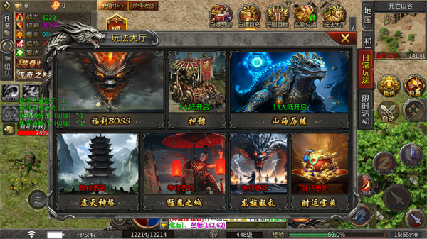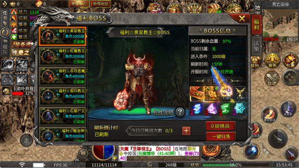 福利BOSS挑战(3次)、空闲挂机刷图囤材料,不做复杂玩法。