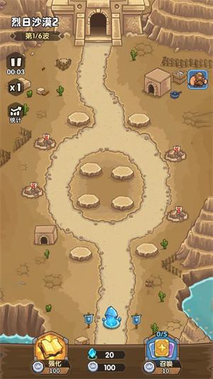 2、进入关卡后后点击召唤按钮可以召唤不同的防御塔进行战斗。