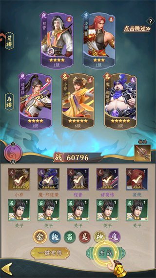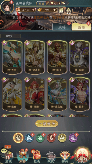 2、上阵战力最高的武将,挑战他们的位置,还可以装备神兵提升战力。