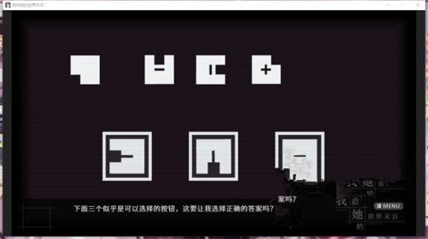对 就是箭头指的这个,为此你只需要选择下面的图形作为答案就能成功解谜了。以此类推,左上角出现哪个图案就选择那个图案下面的图形。第四章女主给了男主一张纸条,上面写了:【女主对男主的表白】may be like you。
