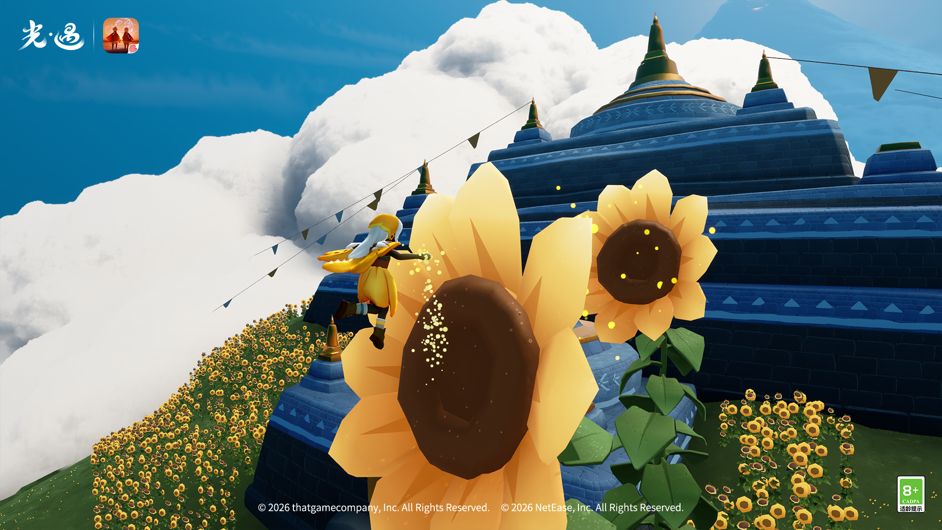 春风拂过云野,天空王国迎来了烂漫花期。云野神殿山丘两侧将盛开向日葵花海,活动场景会根据时间呈现黄昏、夜晚等天气变化,其他经典的花憩节风景也将如期回归。