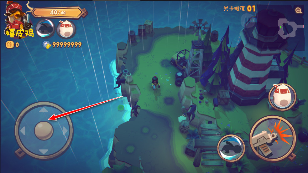 3.左下角的虚拟摇杆可以控制角色进行移动