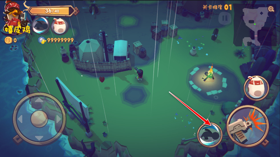5.右下角的这个按钮可以释放技能,比如这个是炸弹
