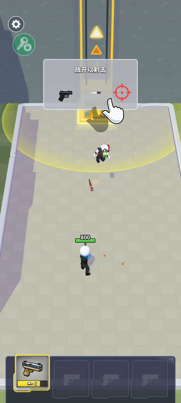 6、然后控制人物向前走,当敌人出现在虚线内的时候,就会自动攻击;