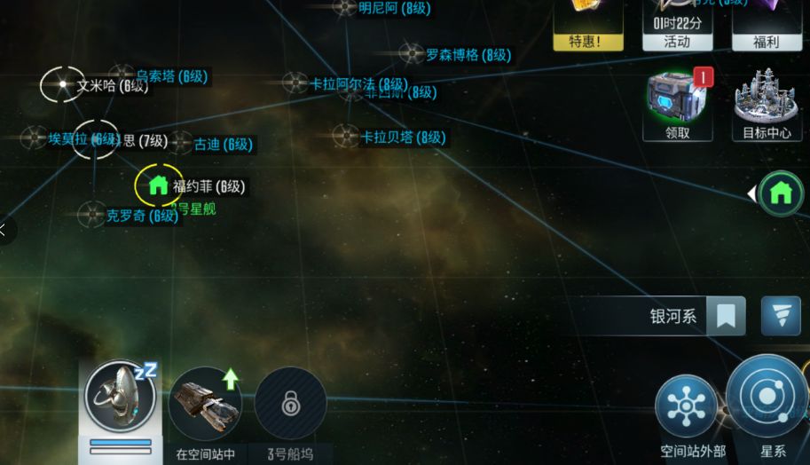 1.点击主页面右下角的【星系】去切换到星系地图;