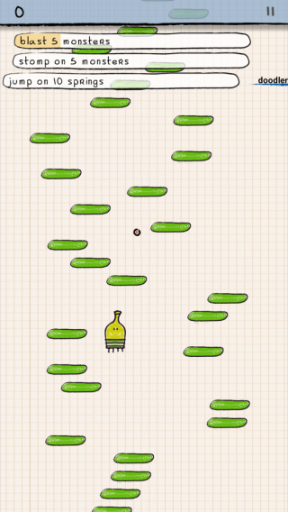 涂鸦跳跃是一款经典的休闲跳跃手游,由Lima Sky开发。玩家操控一个名叫Doodler的小怪物,在无尽的竖屏关卡中不断跳跃,避开障碍物并利用弹簧、火箭等道具攀升更高分数。游戏采用手绘风格,画面简洁可爱,操作简单却极具挑战性。玩家需躲避怪物、黑洞等危险,同时利用平台巧妙前进。随着高度提升,难度逐渐增加,考验玩家的反应力和操作技巧。