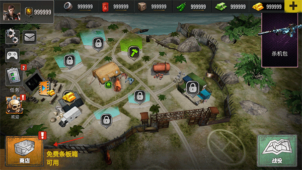 4、通关后,我们来到基地,可以看到资源都是无限的,放心使用,接下来按教程点击箭头所示的,建立加油站。