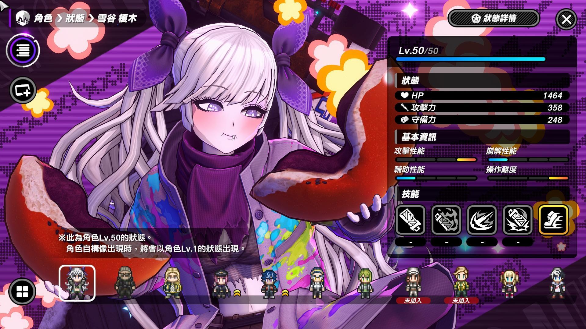 雪谷榎木:可以透过主要攻击、次要攻击和反击获得热能,热熊到一定层数後,可施展战术技能,消耗一些热熊可以施展高倍率的一击。雪谷榎木拥有很高的攻击倍率,终极技能还能直接秒小怪,不过她的主要攻击挥舞速度比较慢,但第四段倍率高,可以透过精闪避行主要攻击时,可与主要攻击第4段进行连携,也能方便收集热能。雪谷榎木会比较偏利用这些高倍率有技巧的攻击。