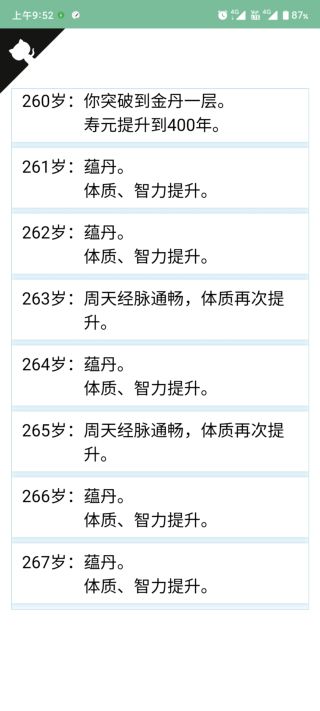 突破到金丹:智力+2,体质+20,寿命上限提升到400