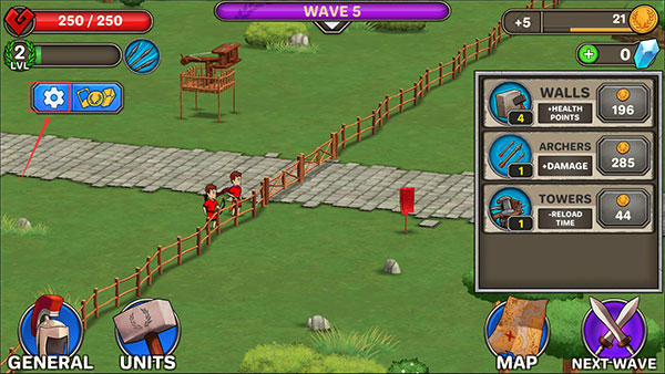 5、点击【下一波】按钮就能开始战斗,左下角可以出兵,下方还有技能按钮。