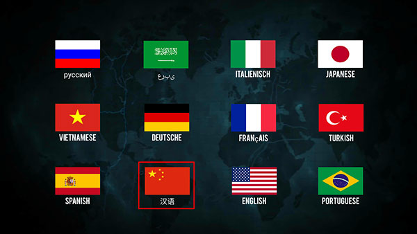2、选择“汉语”,这样游戏就是显示中文;