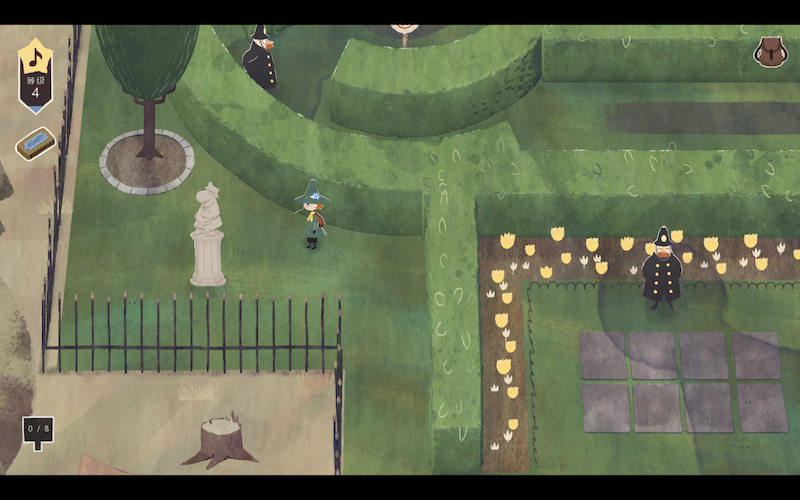 但就怕可能会漏,这个花园就是游戏最后要去取戏服,就要到这来取。然后你需要把整个花园都搞脏,花弄烂,衣服弄脏,容易漏掉的是一些有灵感的草丛也要去钻一下,就可以了。