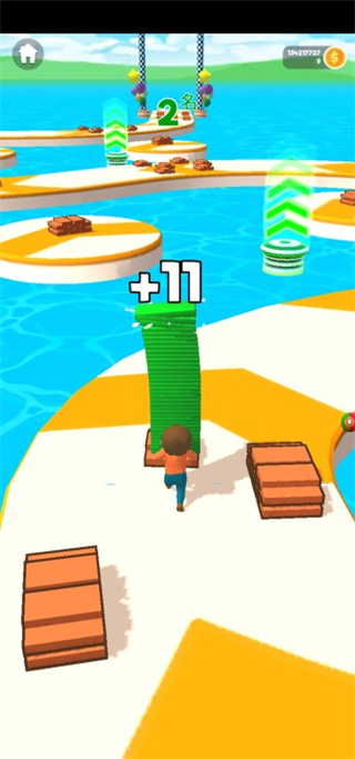 1、首先我们进入搭个桥快跑游戏中,操作是比较简单的左右滑动来进行人物的控制。