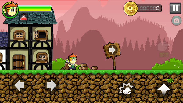 4、等待一会加载,游戏内左边两个按钮控制角色左右,右边则为攻击和跳跃键;