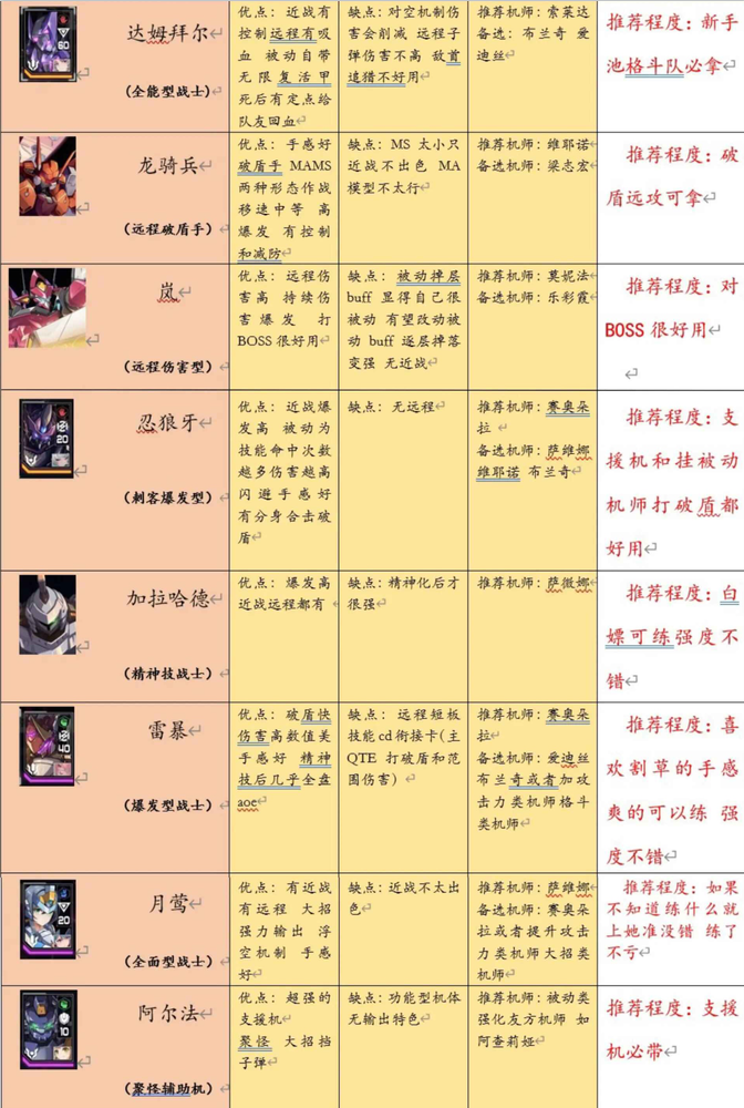 姑且这边也是从低稀有度的机体里挑选了一番,在这里稍微做个推荐