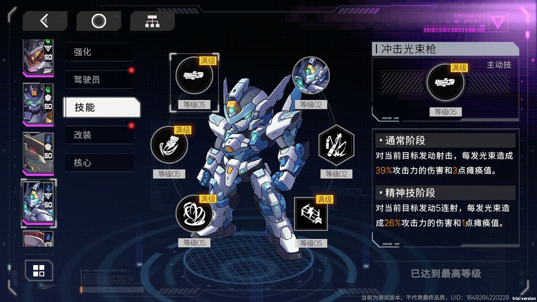 刷一管体力才能让金机体的一个技能升一级,这种事不是在说笑,而在此基础上,如果不是因为测试发了很多的狗粮,不然光是拉机体到60级(满级应该是70,但本次测试最高60),都要耗上不少时间,更不要说将技能点满和将改装件强满了