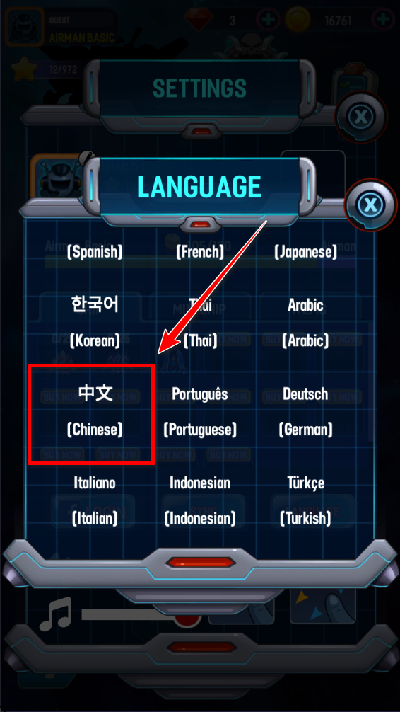 3.找到中文[Chinese]选项并点击,游戏就成功切换成中文啦。