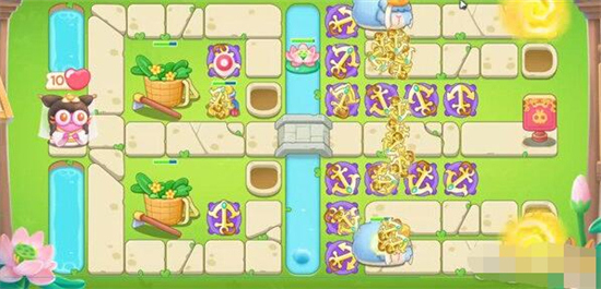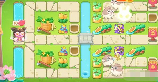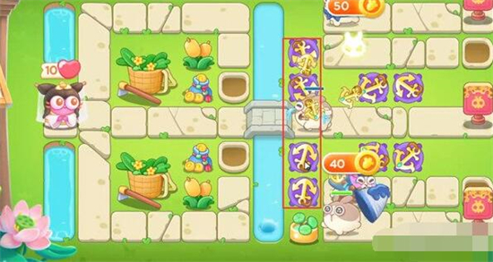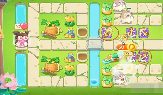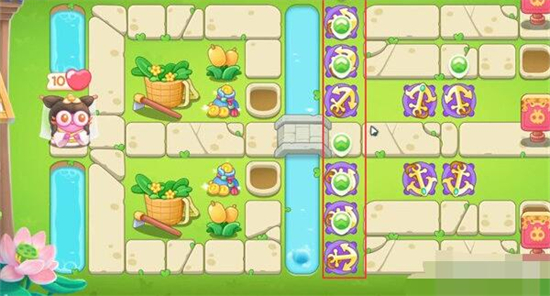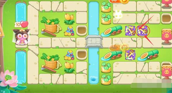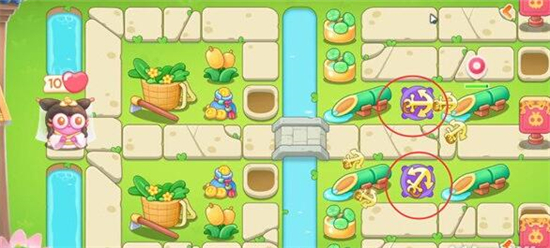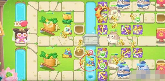 1、开局在下图位置放置两个船锚,可以减少前期清障碍和打兔子的时间。