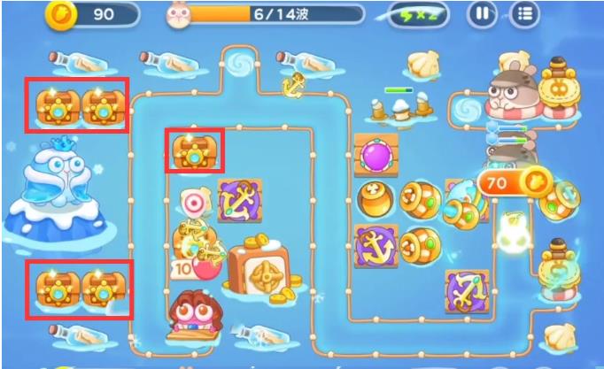 8、最后玩家可以提升炮台等级,在场地中放置满船锚,就算挂机也能轻松通关。