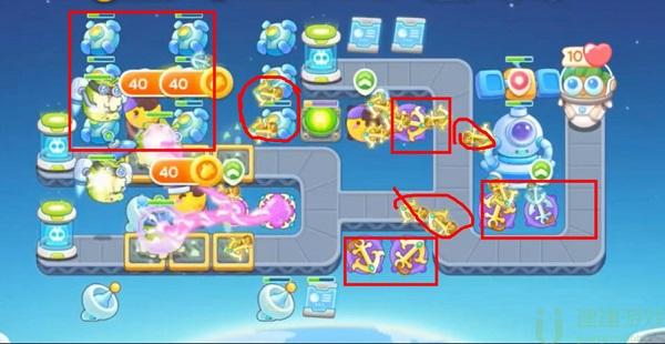 4、玩家只需要后期多安放船锚,用来补伤害,建造月 亮减速,后期很好通关,如下图所示。