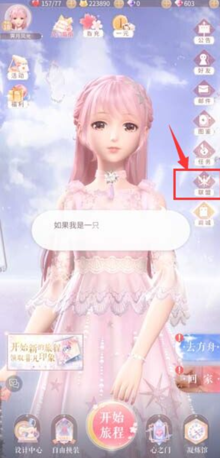 1、打开闪耀暖暖,点击页面右边的联盟图标。