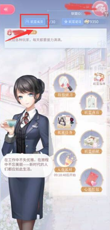 2、在联盟页面中点击右上方的联盟成员。