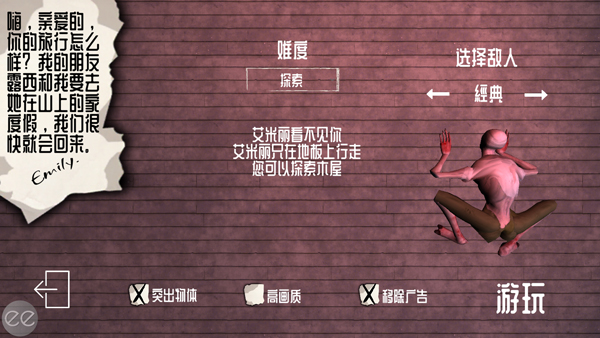 艾米丽的邪恶诅咒是一款紧张刺激的第一人称恐怖冒险手游。玩家将在一座阴森诡异的房子中探索,寻找线索,解开谜题,同时逃避邪恶的艾米丽的追捕。逼真的画面与音效营造出强烈的恐怖氛围,挑战玩家的心理承受力。游戏结合解谜、潜行和逃生元素,让你在步步惊心的环境中体验生死逃亡的刺激。勇敢面对恐惧,揭开艾米丽背后的恐怖真相!
