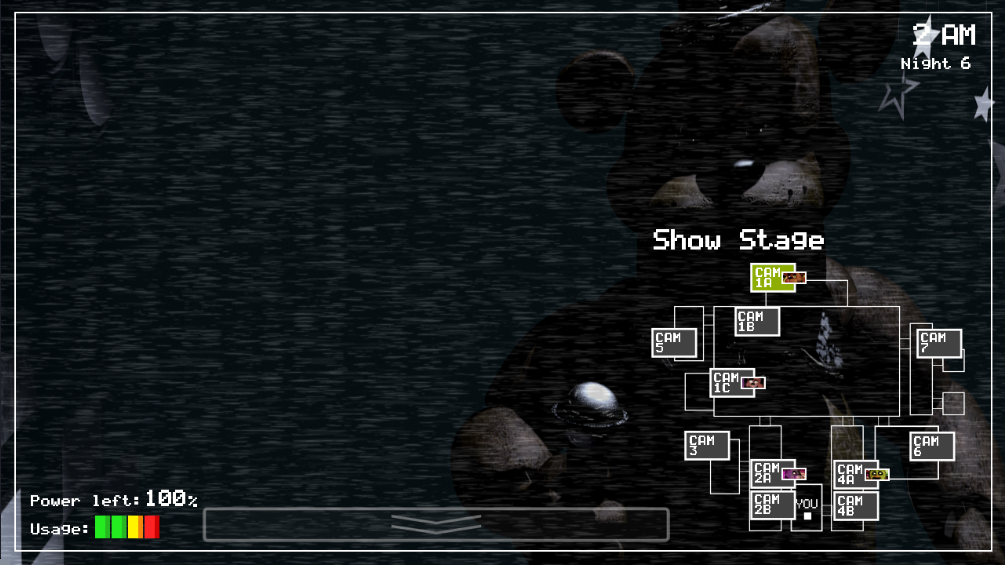 当弗莱迪到达cam4B时基本会久居在这附近,会和奇卡轮番替换,玩家可通过盯视它(打开监控并调到它所在的房间)来遏制它的行动,降低它的行动速度,甚至在AI较低时玩家可以通过一直盯视舞台把它控在舞台上,这就是“冻熊法”